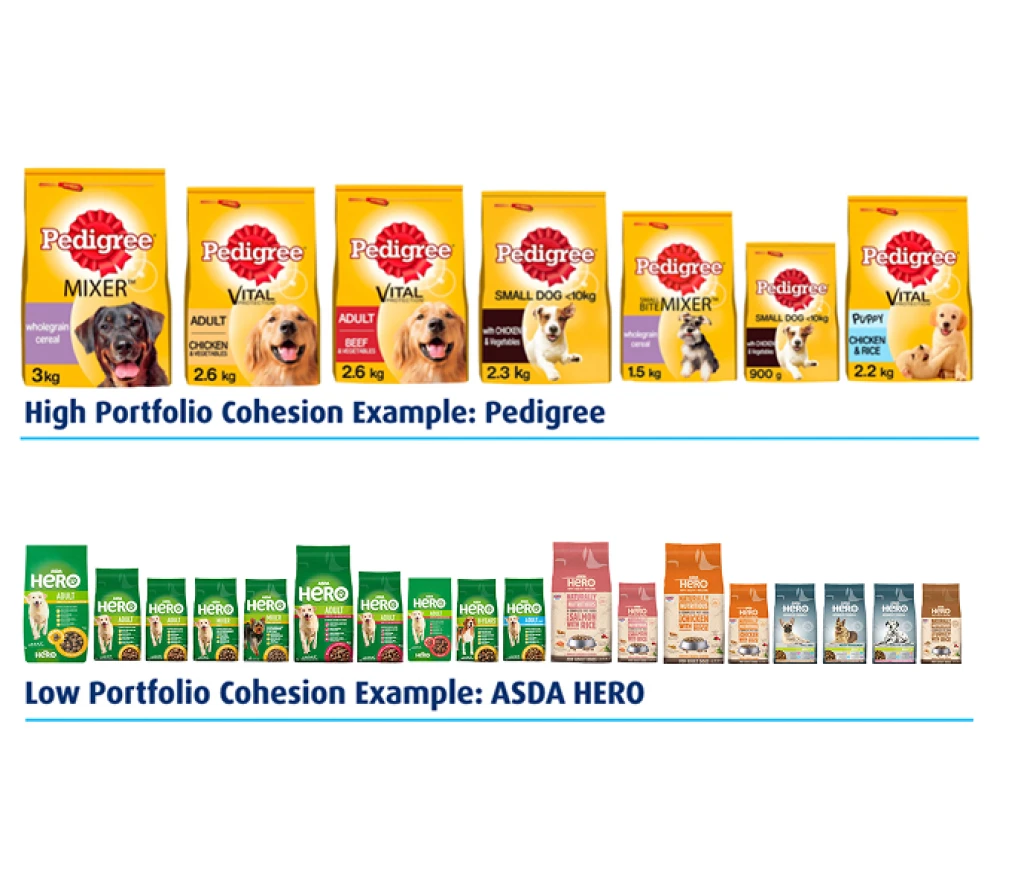 Portfolio Cohesion refers to the visual similarity of products in a branded portfolio. Cohesion is created by the consistent use of Distinctive Brand Assets and other design elements. Portfolio Cohesion builds Mental Availability by making your brand easier for consumers to recall, and Physical Availability by building your brand’s prominence in buying situations.