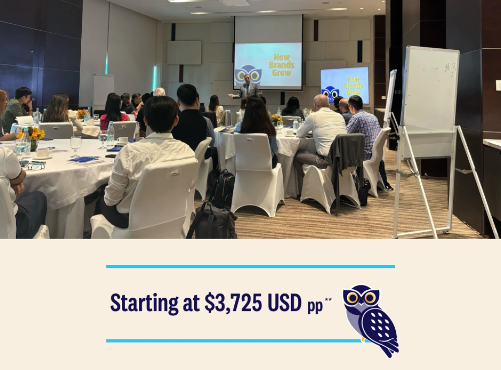 How Brands Grow Live! is a 2-day intensive workshop exclusively for Ehrenberg-Bass Sponsors.* It is highly customised to your business and industry with relevant primary and secondary data helping to land the frameworks, and maximise your team’s take-aways.