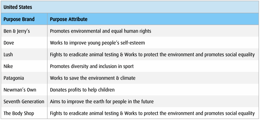 Table 3: List of Purpose Brands & Purpose Attributes Tested in Each Country