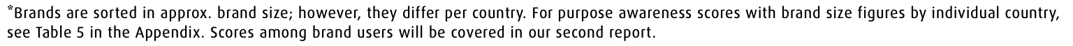 Table 1: Brand Purpose Recognition of Leading Purpose Brands (%)*