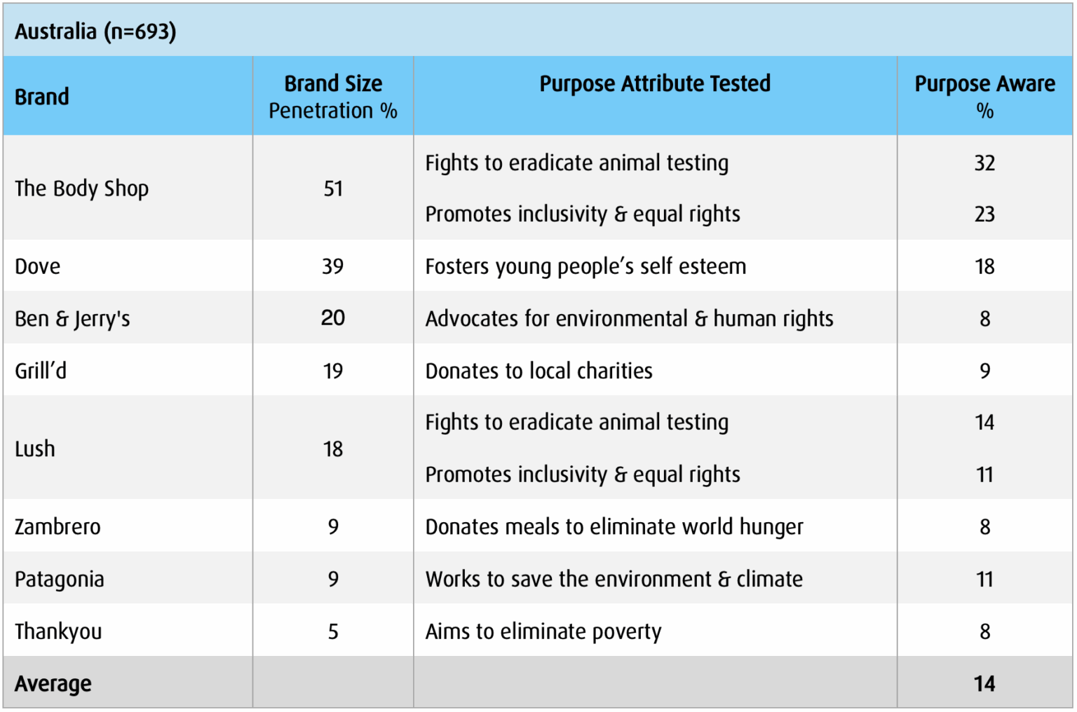 Conversely, if the purpose is donating a percentage of profits to a cause, growing your brand via evidence-based strategies would result in higher funds being donated. Overall, if brand purpose remains largely overlooked by consumers, it could be argued that it is not benefiting the brand or society, particularly if scarce resources are being used to promote it.