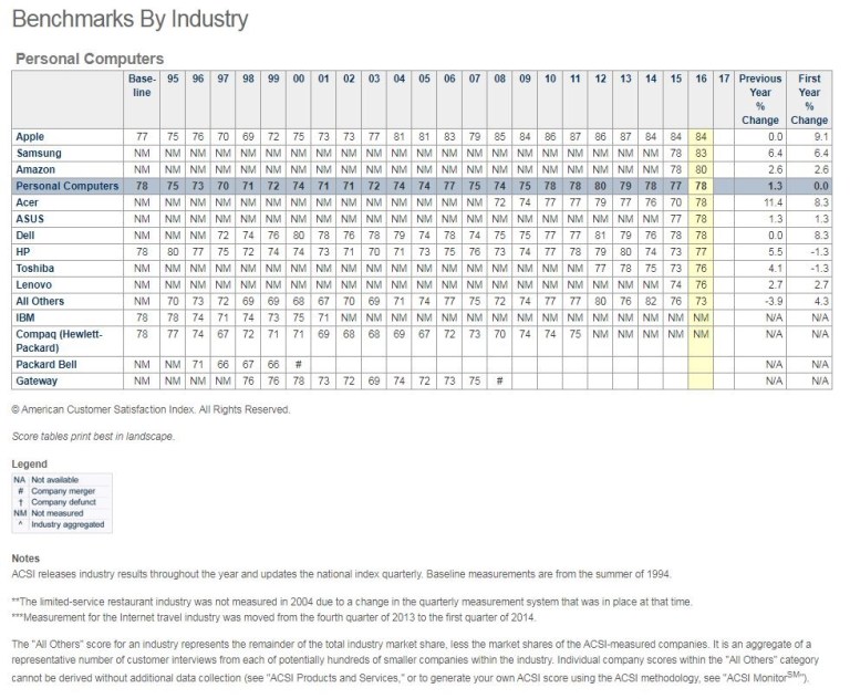 Table 2 Brand satisfaction with personal computers, 1995–2016